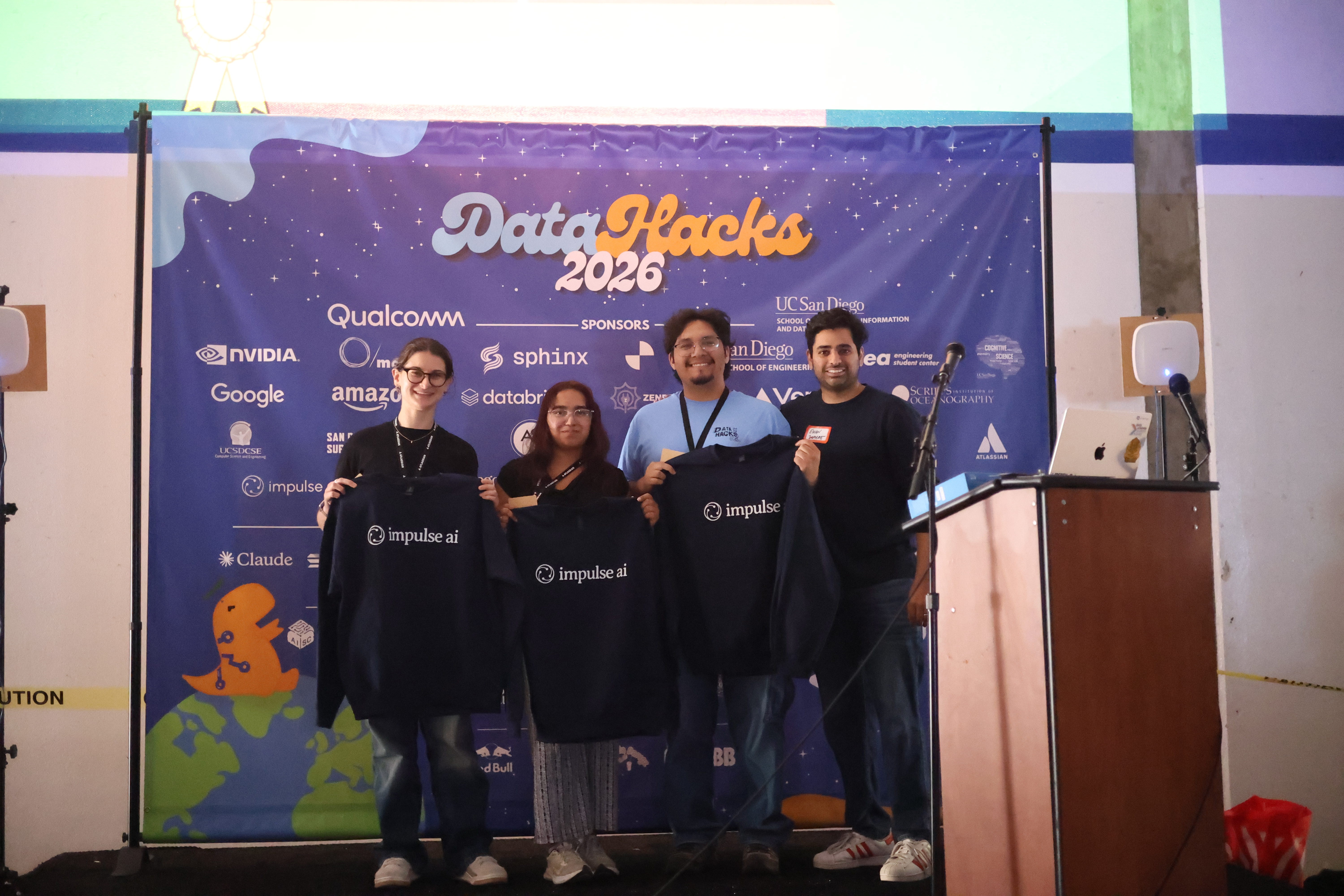 This past weekend, Impulse AI was proud to sponsor DataHacks 2026, hosted by UCSD's Data Science Student Society. After 26 hours of building, we walked away genuinely impressed, not just by the polish of the work, but by the ambition of the problems teams chose to solve.